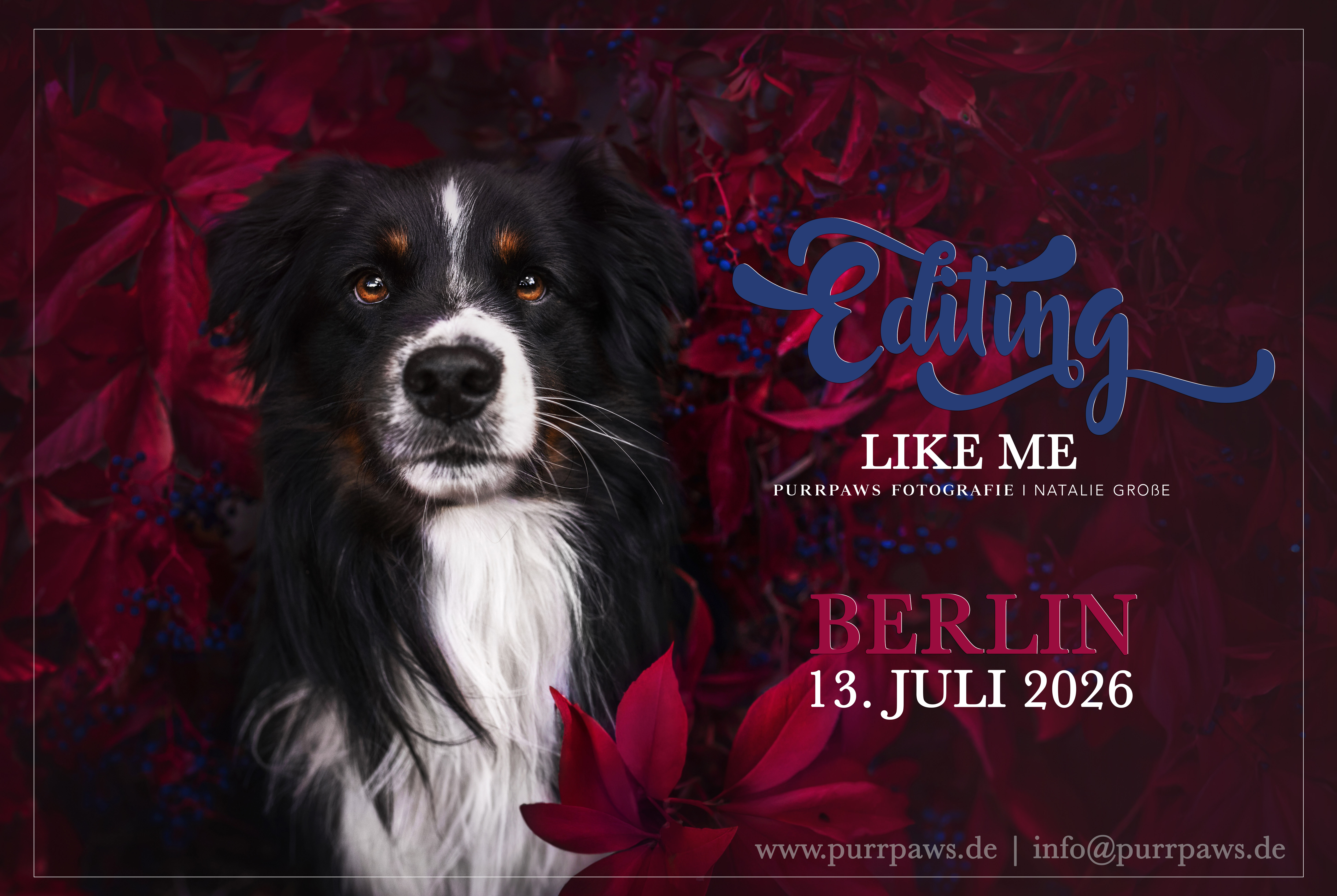 - WORKSHOP: 6 Plätze | Fotografie & Bildbearbeitung | Thema „Dogs & Humans“ | p.P. 399€ zzgl. 50€ Reise- und Übernachtungskosten | inkl. Fotografie Part, 1 Bildbarbeitungs Part, Models & Mittagessen, 60€ Gutschein auf ALLE meine Angebote | RATENZAHLUNG MÖGLICH!